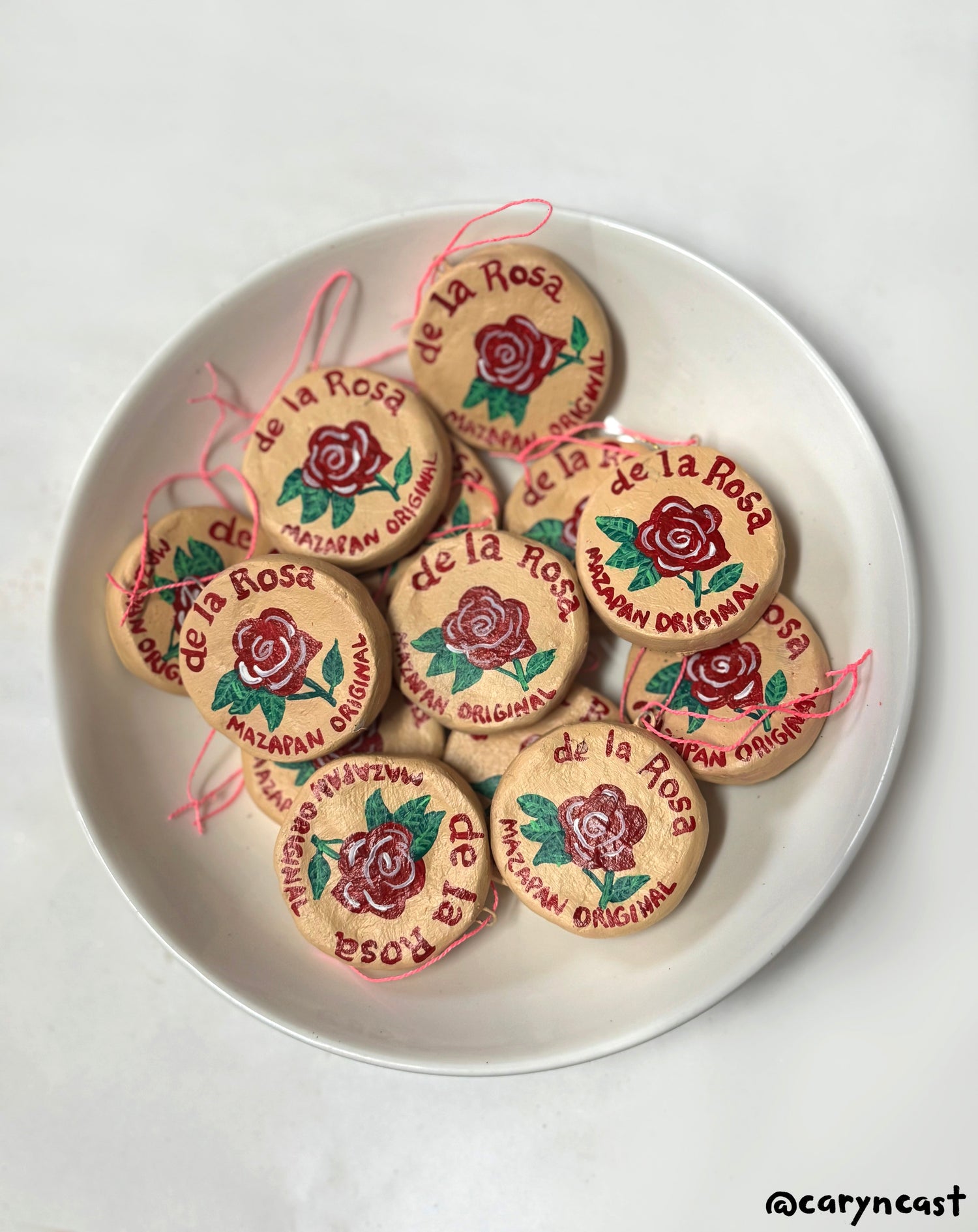 Figurines of favourite foods sculpted from air dry clay, sanded and handpainted.