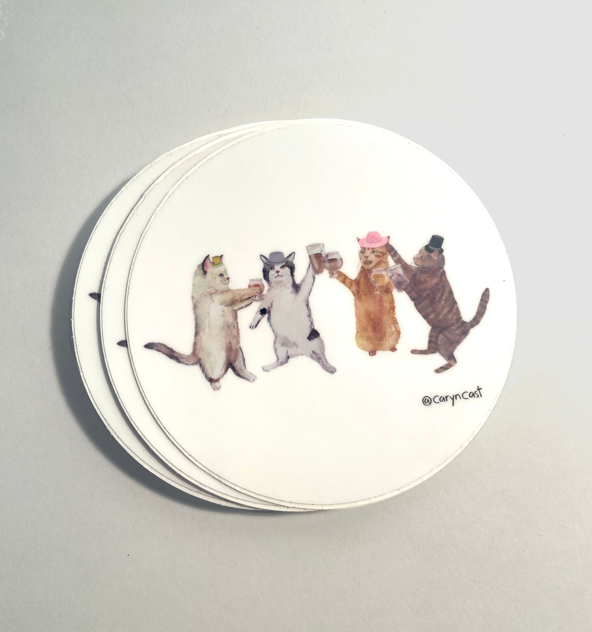 Cats, doing what they do best! A durable sticker sized at 3” X 3.” The perfect bling to add to your computer, phone, water bottle, suitcase, guitar case and more.