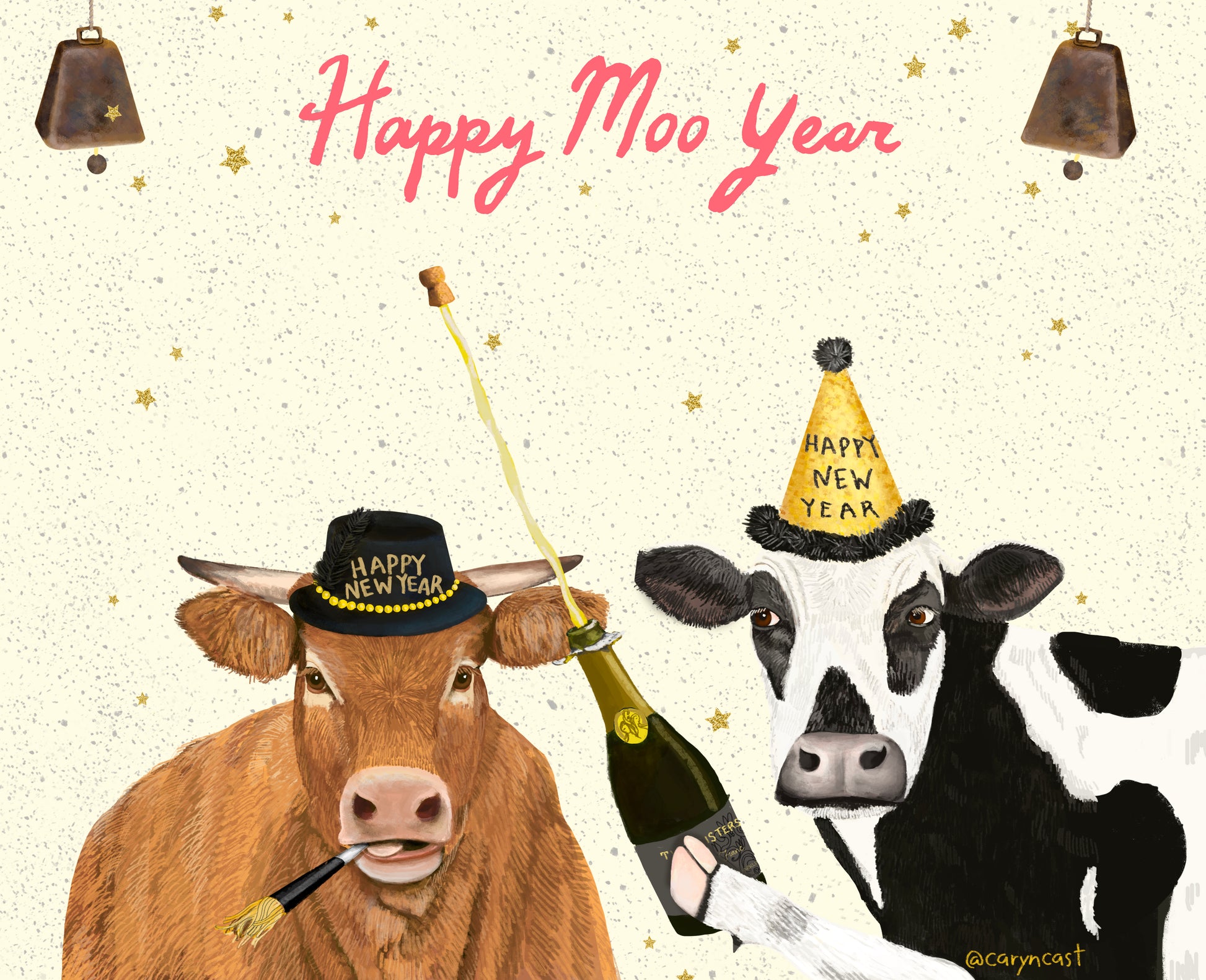 Happy Moo Year postcard is carefully wrapped and shipped in recycled materials.