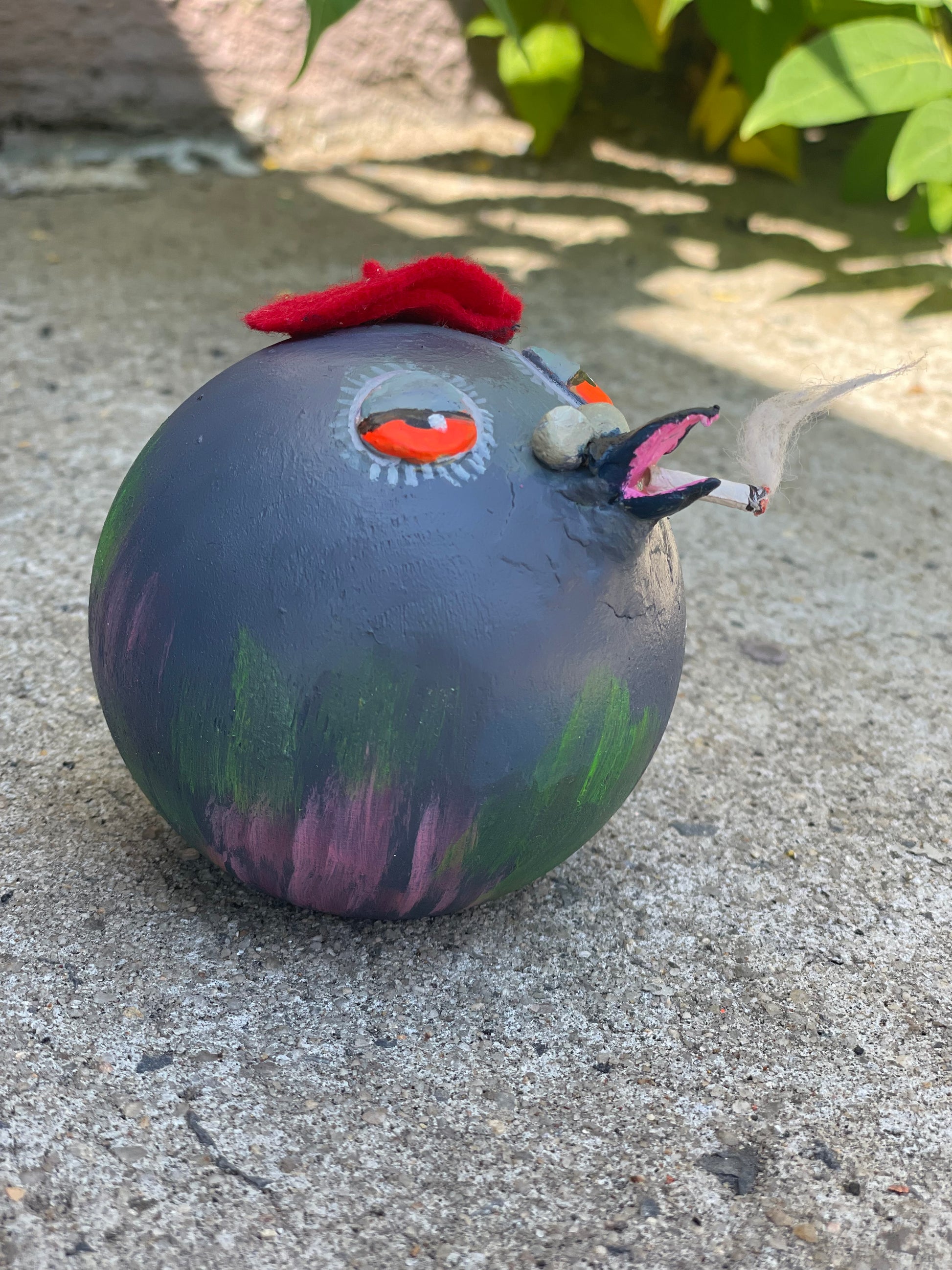Pierre the Pigeon will keep you company at your desk, bar, office, bookshelf, kitchen counter, or anywhere you’d like to spice things up. A handpainted pigeon onto a wooden doll head measuring 3” in diameter and a bit weighty, as well as flat on the bottom, so he will stay put.