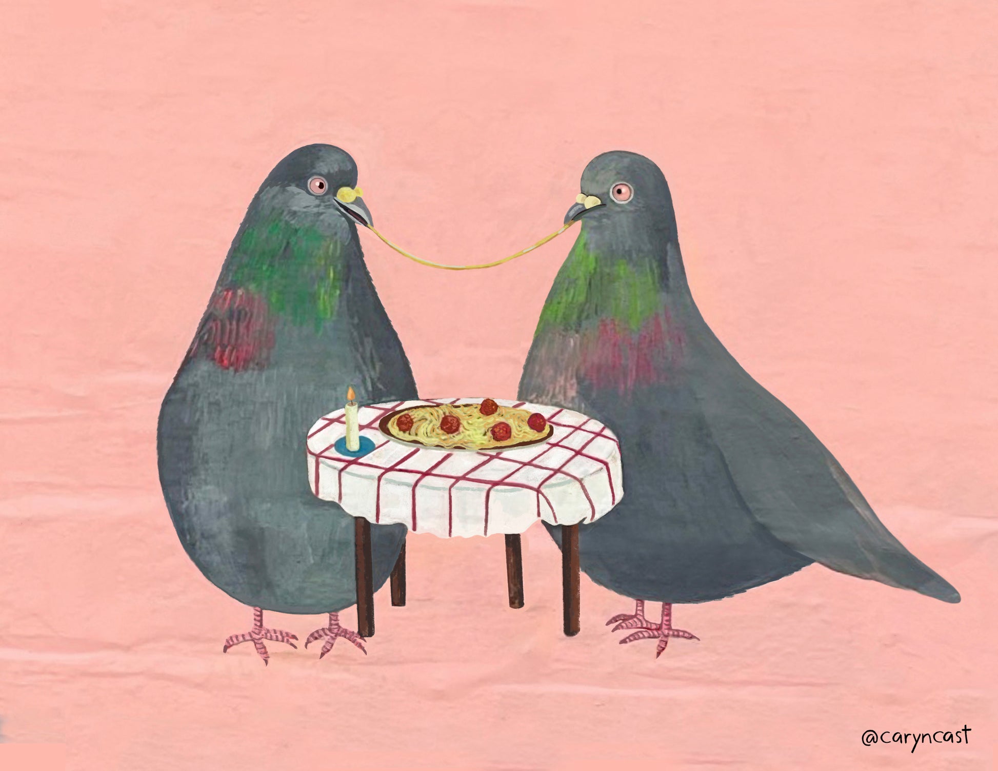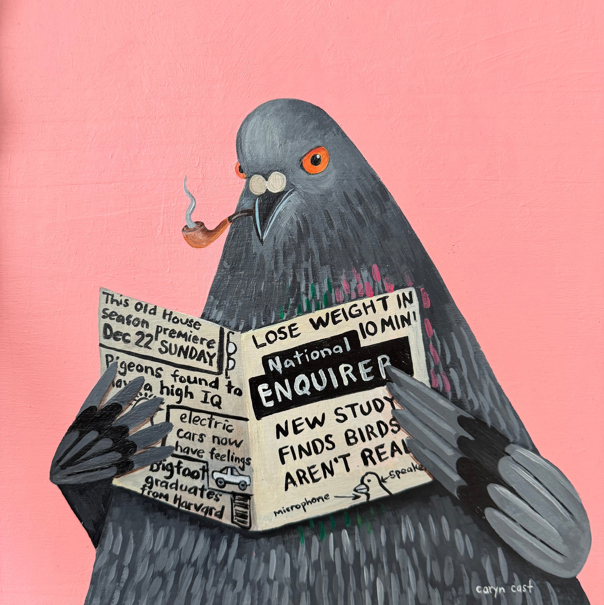 Set of 4 pigeon themed postcards to send to your favorite pigeon fan. Featuring designs Birds Aren't Real, Jerry on a Skateboard, Birdbath, the Fluffy Pigeon, and Spaghetti Date. Postcards are doublesided with a small inscription and address on the back, ready to mail. Postcard set comes in a biodegradable protective sleeve. Available as a set of 5 (one of each design) or set of 15 (three of each design).