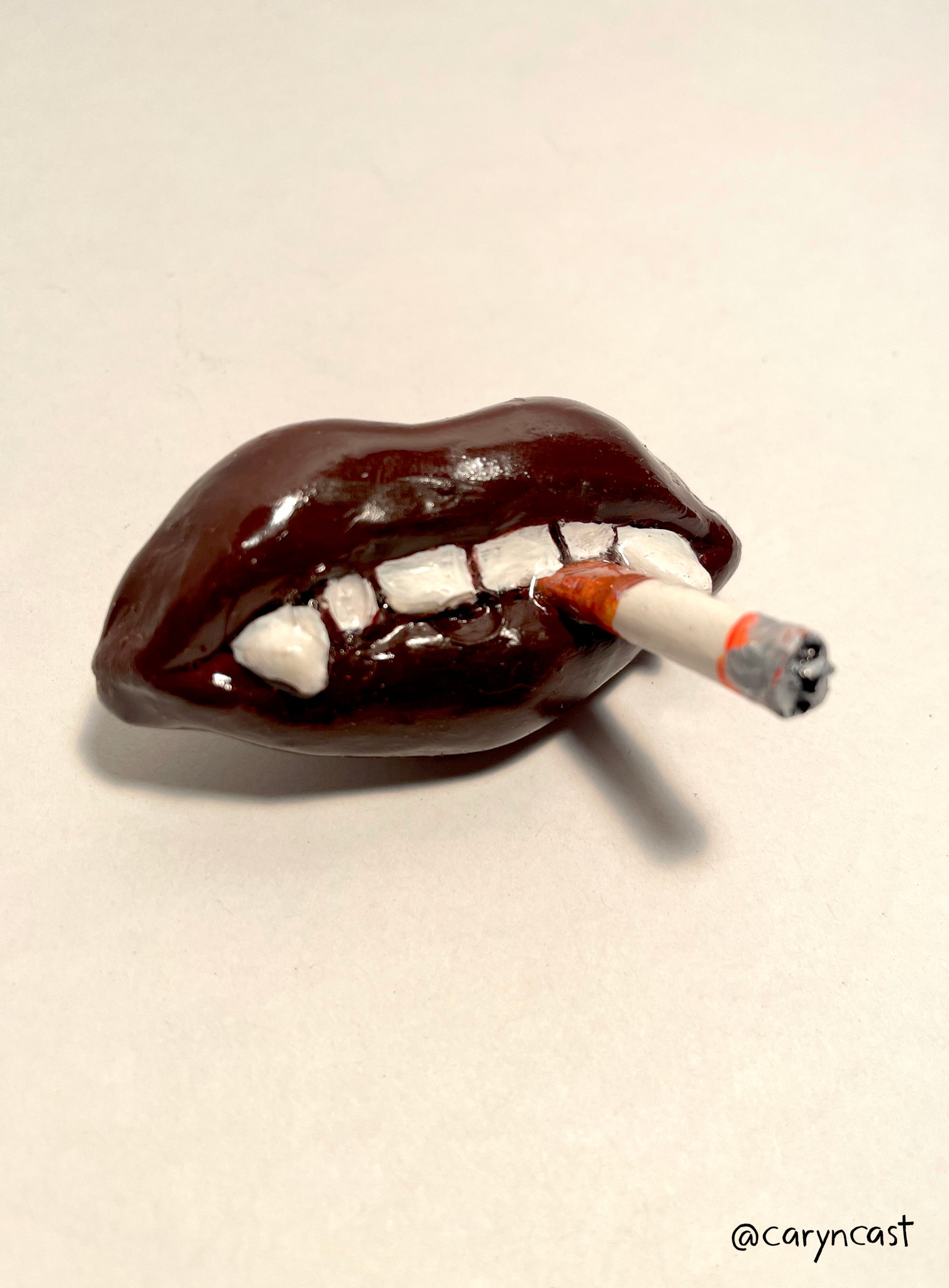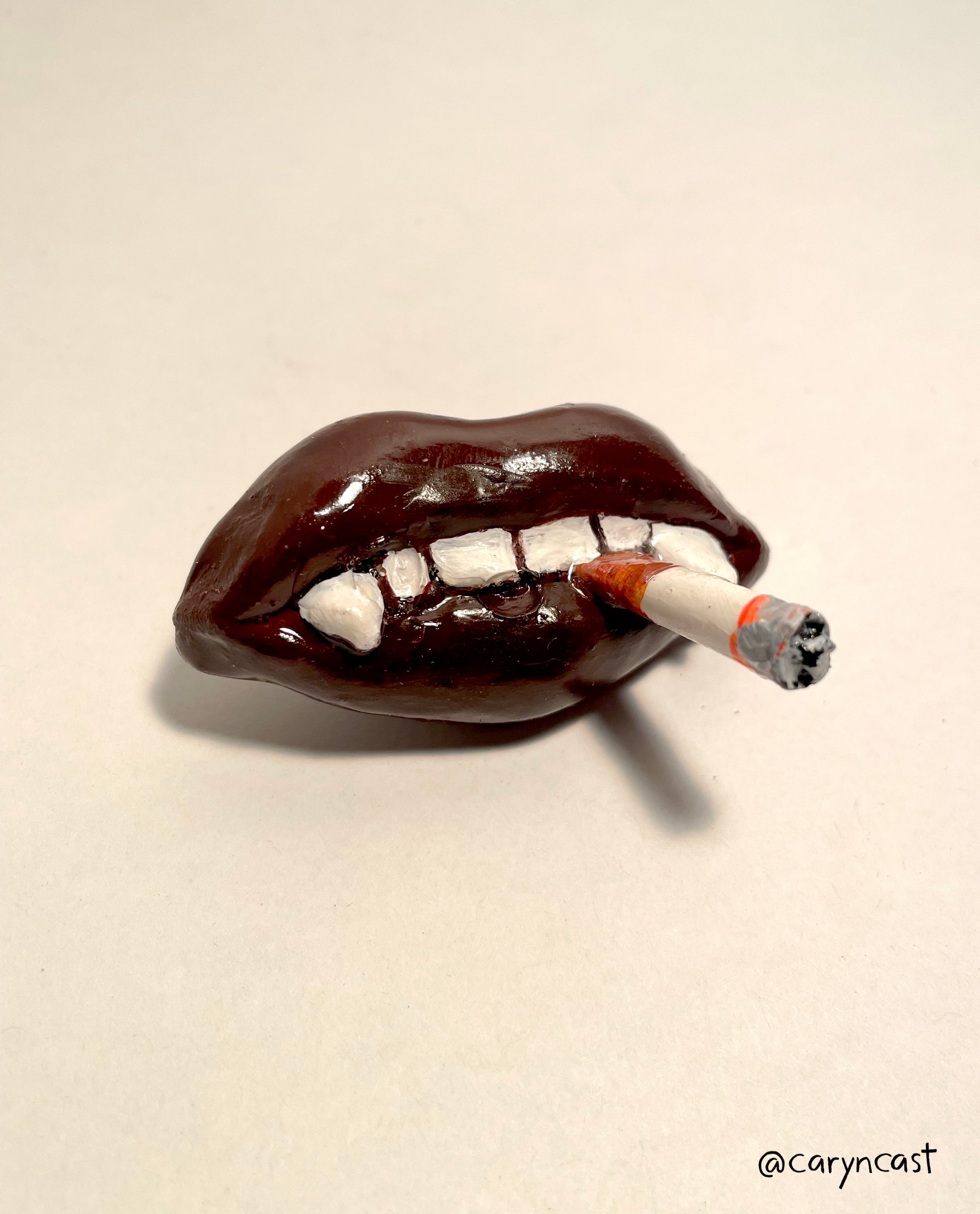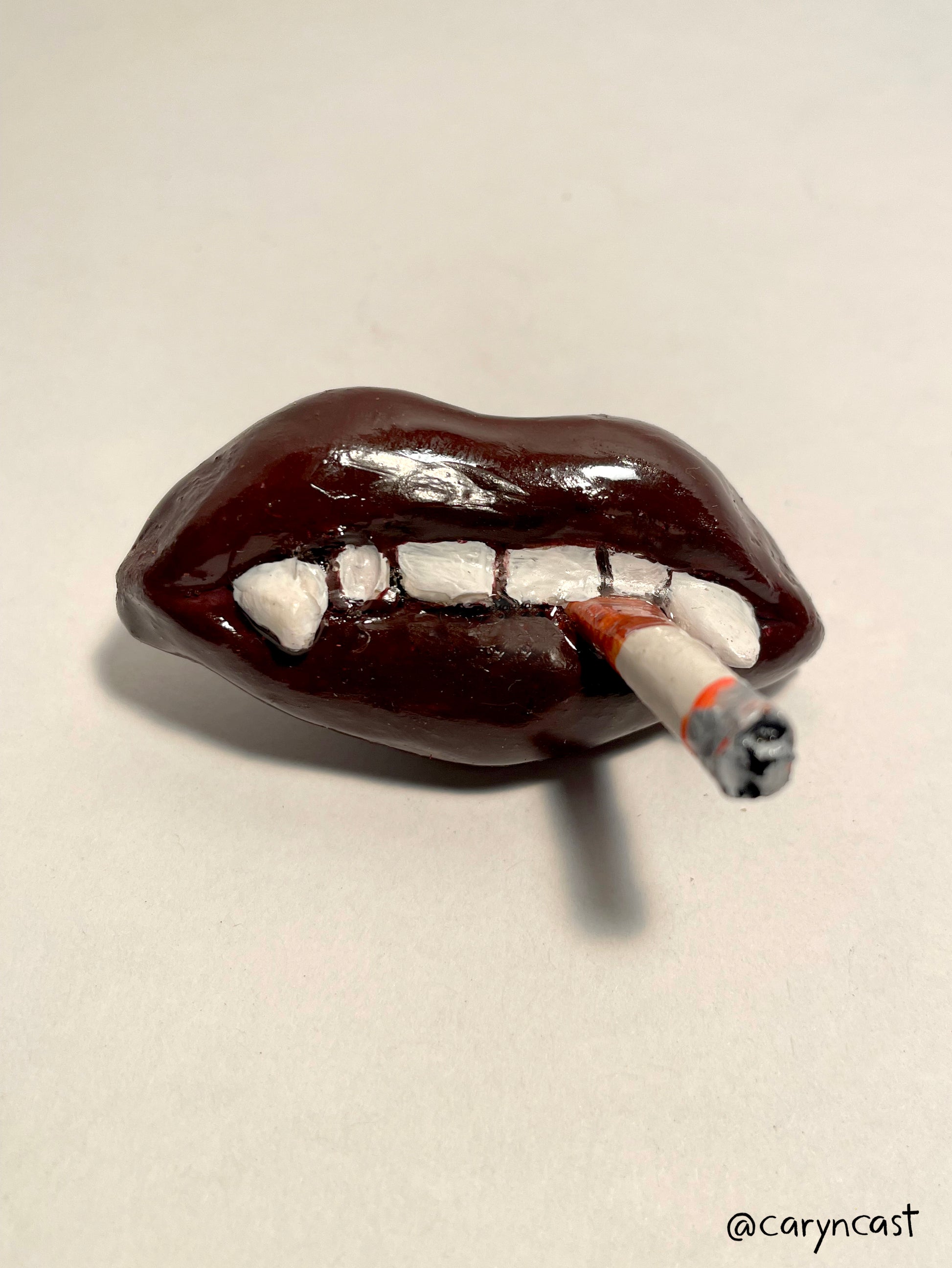Dorothy mouth sculpted out of clay, dried, painted and coated in a thin layer of resin. She will throw shade up on your fridge and all hold up all your receipts at the same time. Dorothy measures 2.5" wide and 1.5" tall. Attached on the back is a very strong magnet, perfect for your refrigerator, metal filing cabinet, locker, or any metal thing that needs some attitude.