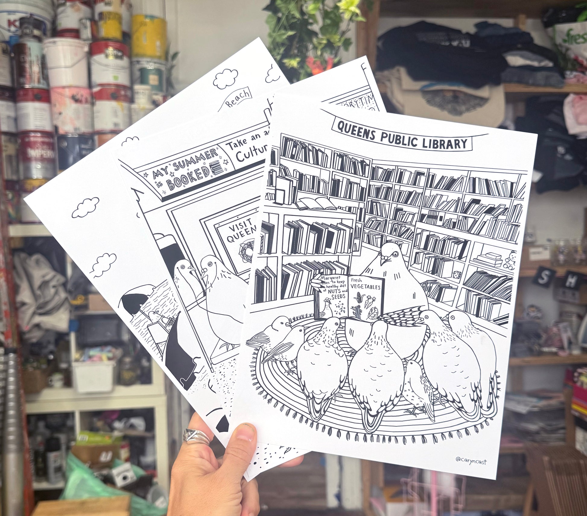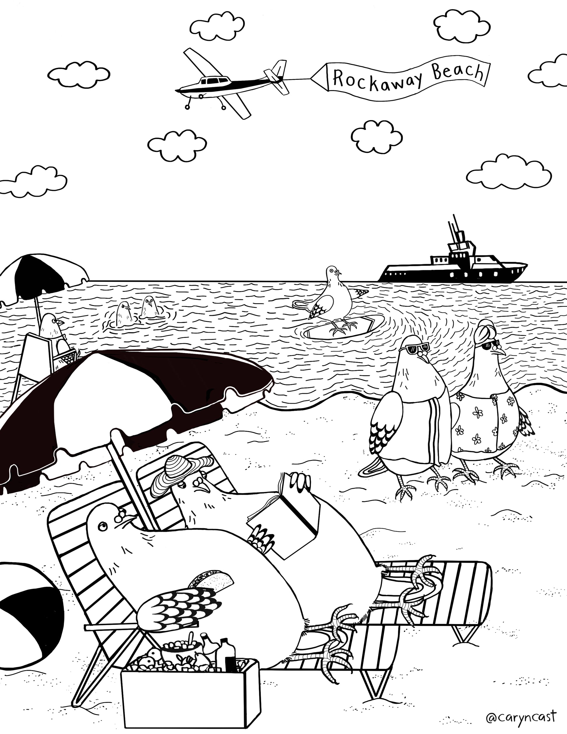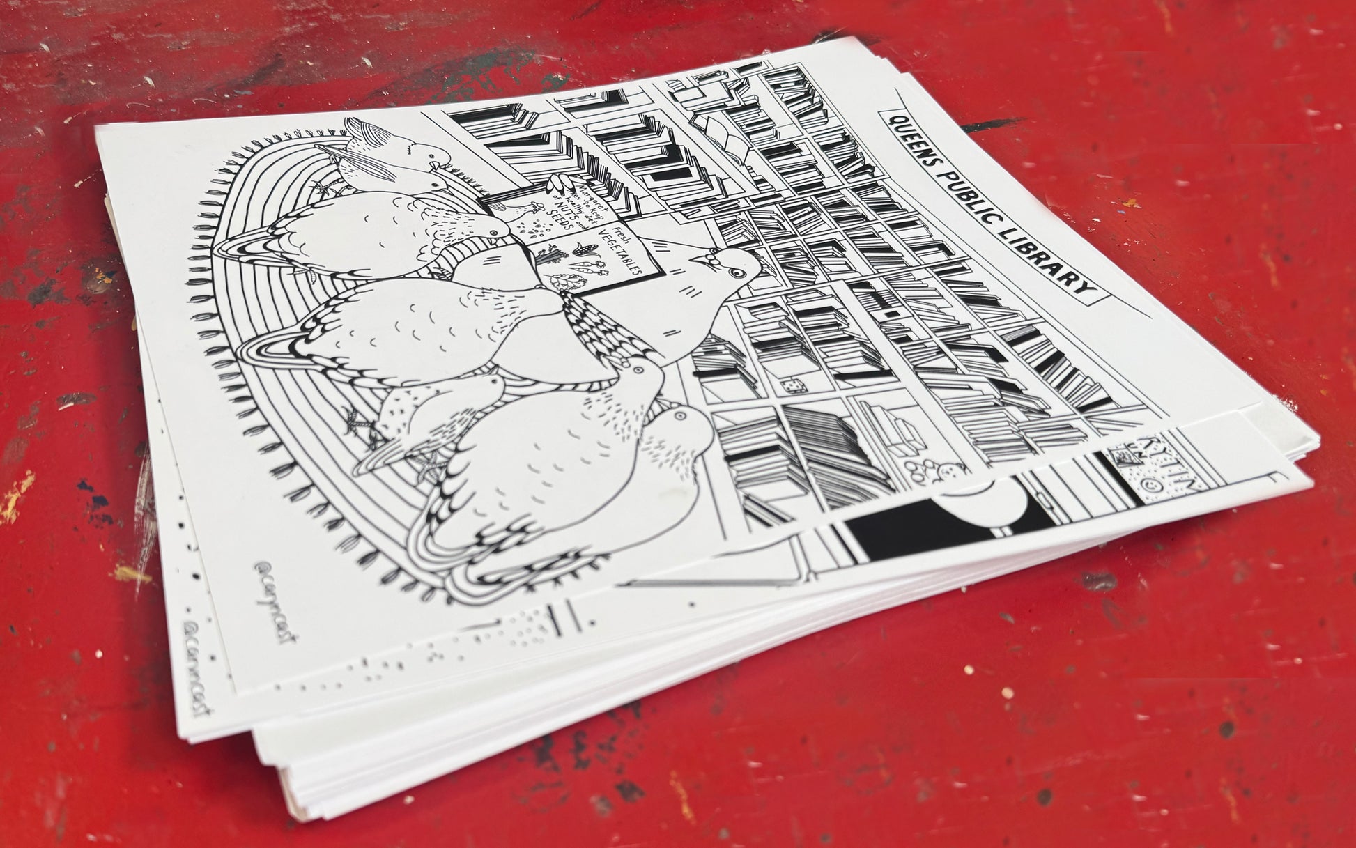 Coloring sheets of pigeon adventures in Queens, NYC. These are custom coloring sheets originally created for the Queens Public Library, and now available individually or as a 3-pack set. Printed on quality acid-free card stock paper and ready to frame once finished.
