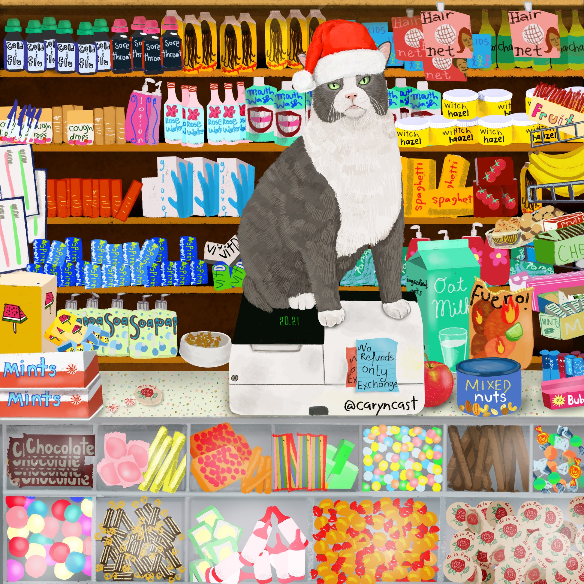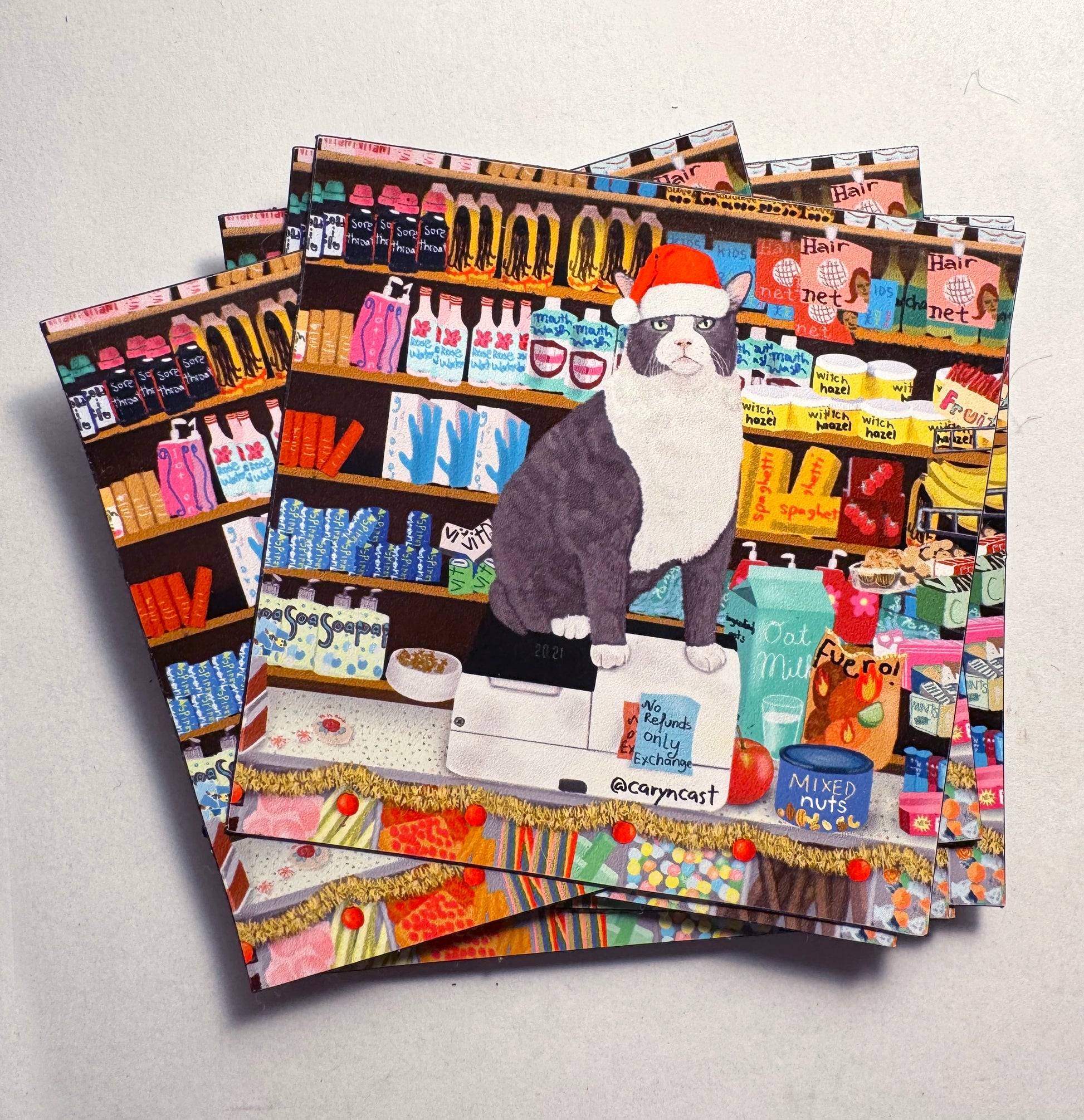 Shipping: Santa Bodega Kitty magnet is wrapped and shipped carefully in all recycled materials.